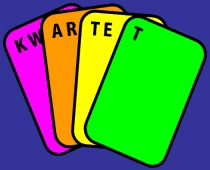 Dan , zomaar opeens, uit het niets, pakt Stijn knutselspullen en maakt een rijmkwartet: 4 kaartjes met poep, soep, enzovoort. Vier kaartjes met wol, mol, sol en kol. Hij komt naar me toe en wil kwartetten Ach ja, waarom ook niet. Een beetje goed maken? Aandacht nodig? Positieve aandacht?
